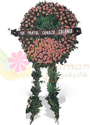 Karanfilden hazırlanmış şık bir tek partel ayaklı çelenk