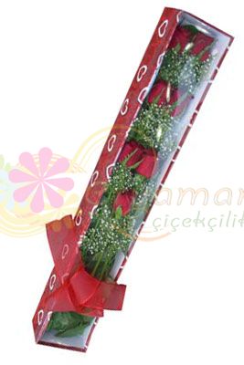 Özel Kalp Desenli Kutu İçinde 7 Adet Kırmızı Gül
